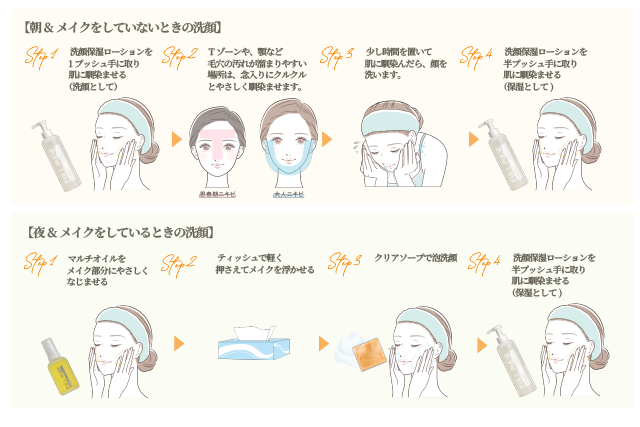 この2種類の洗顔を目的別に使い分けることで、「洗いすぎず」「落とし残さず」肌の調子をキープできるようになりました。